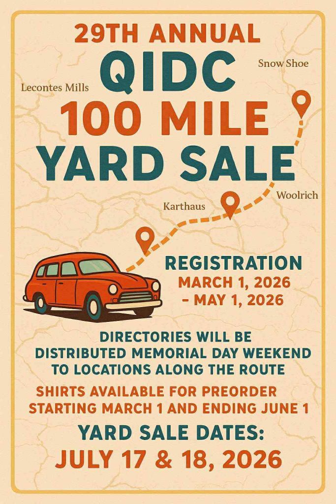 The 29th Annual QIDC 100 Mile Yard Sale for 2026 is planned for July 17 and 18. More information is available here.